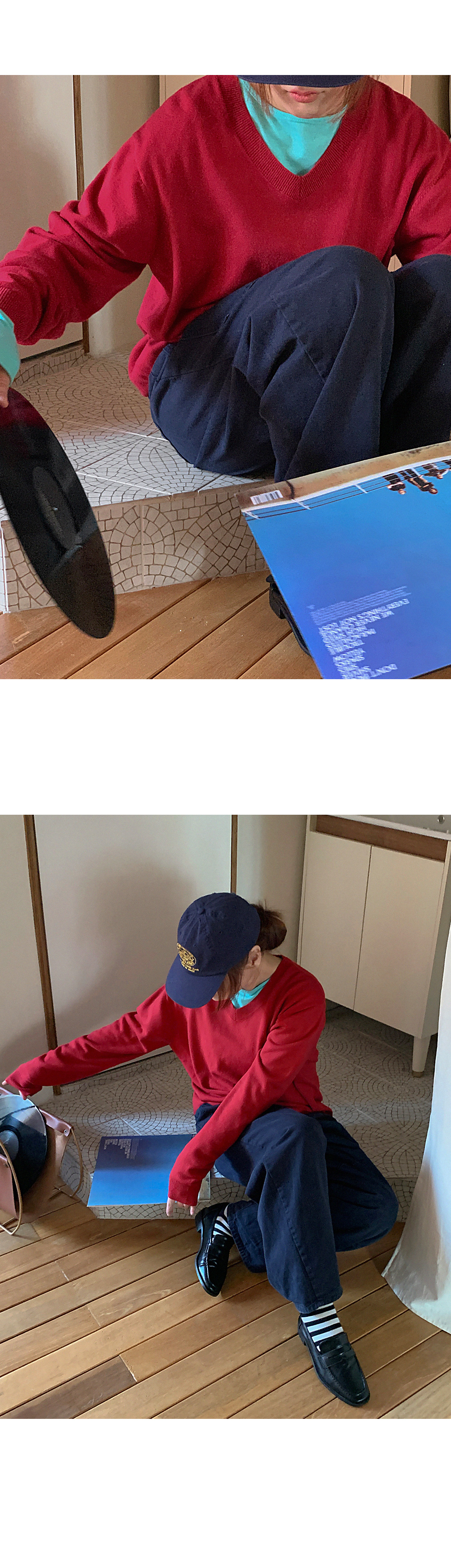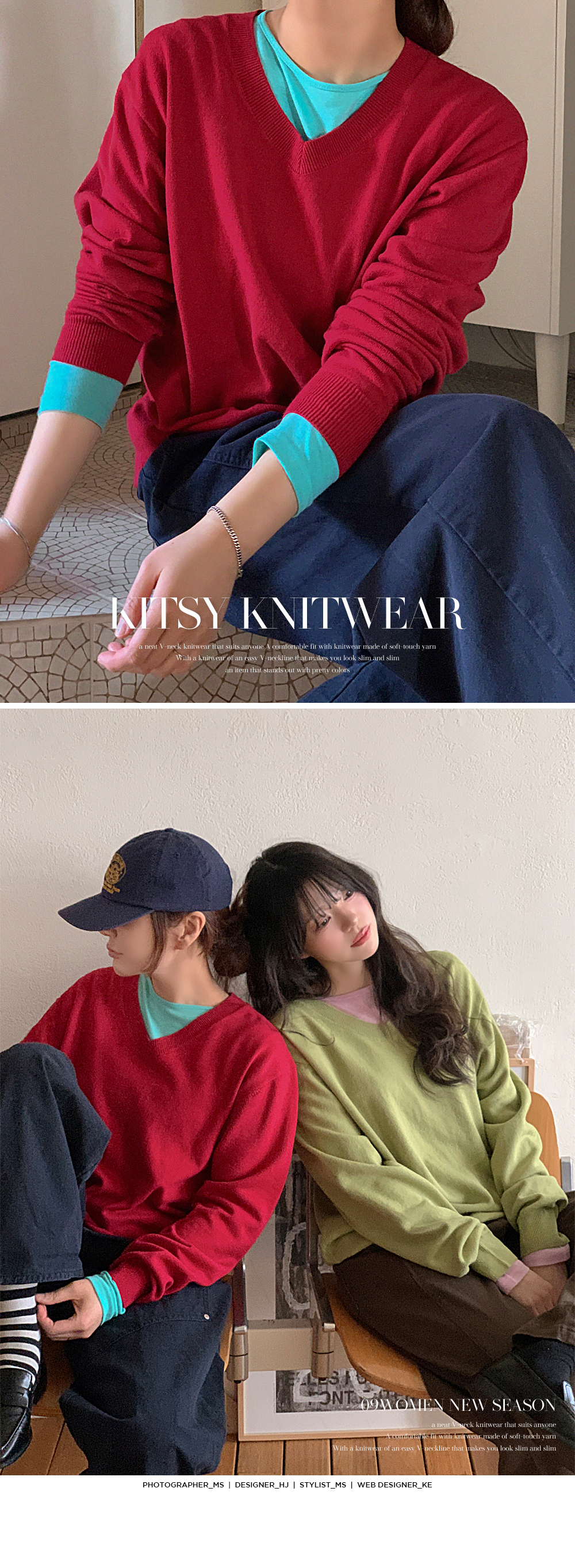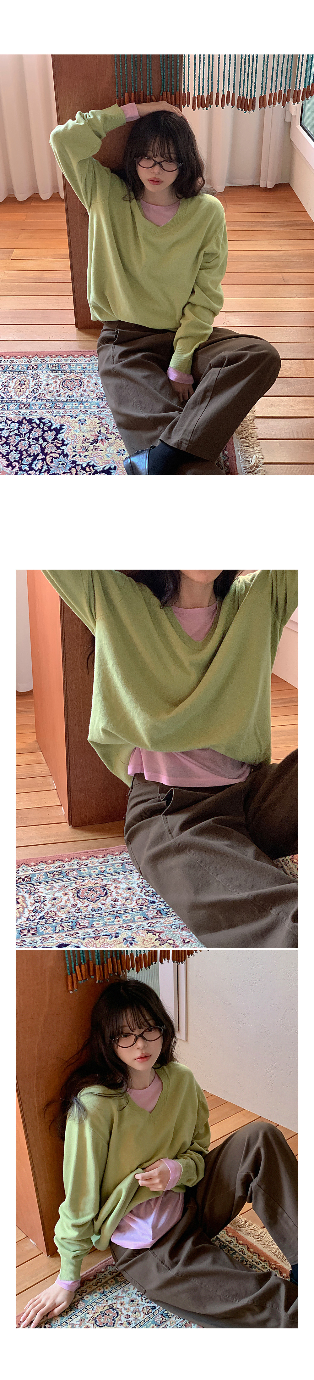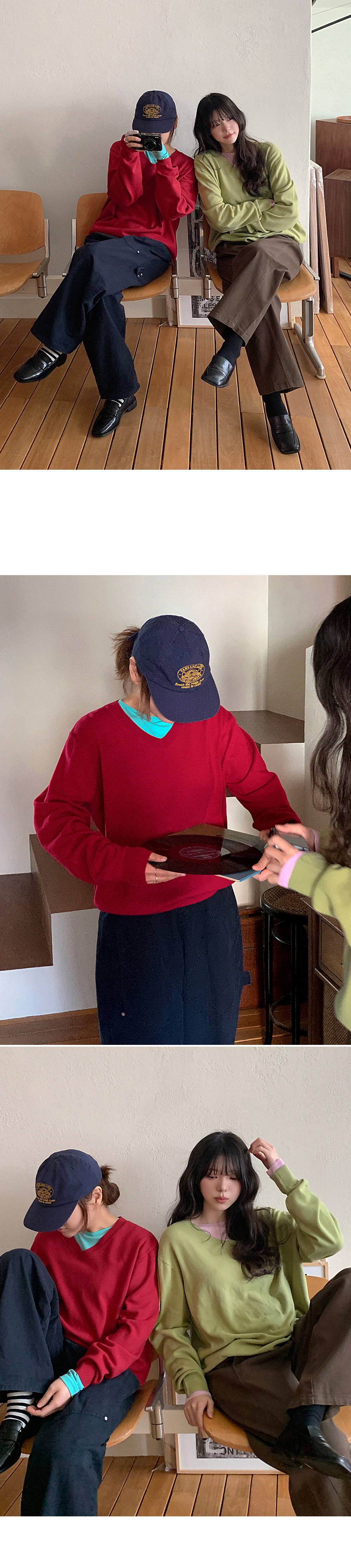 - 부담스럽지 않은 브이넥 라인