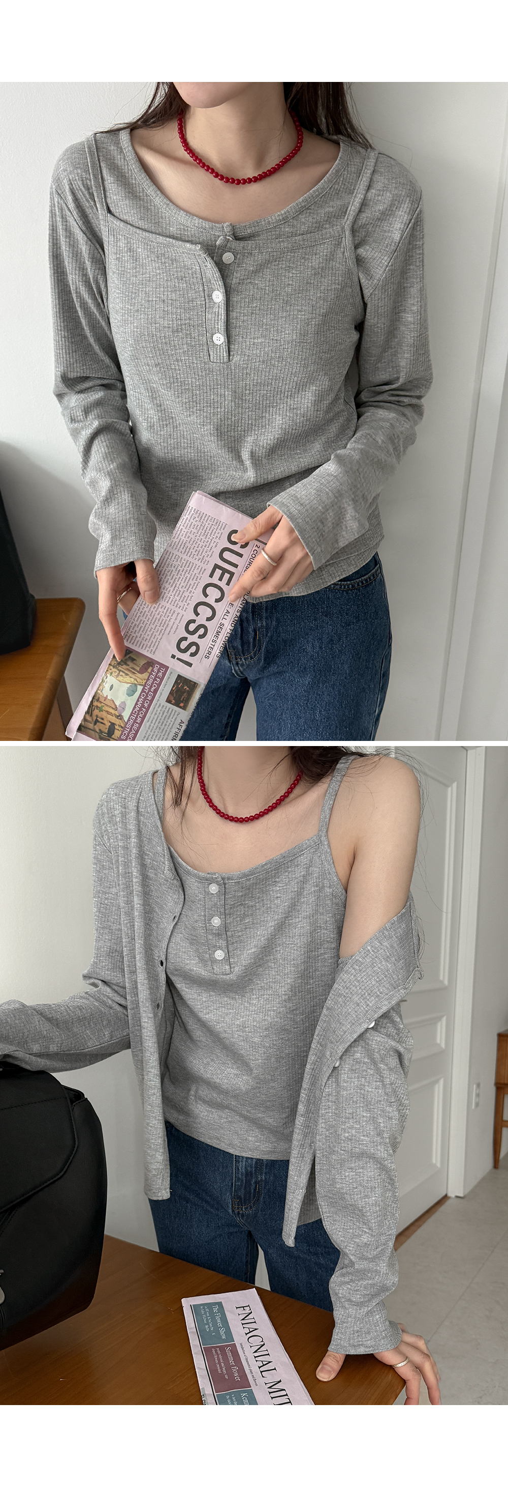스탠다드 핏의 가디건과 나시에요
