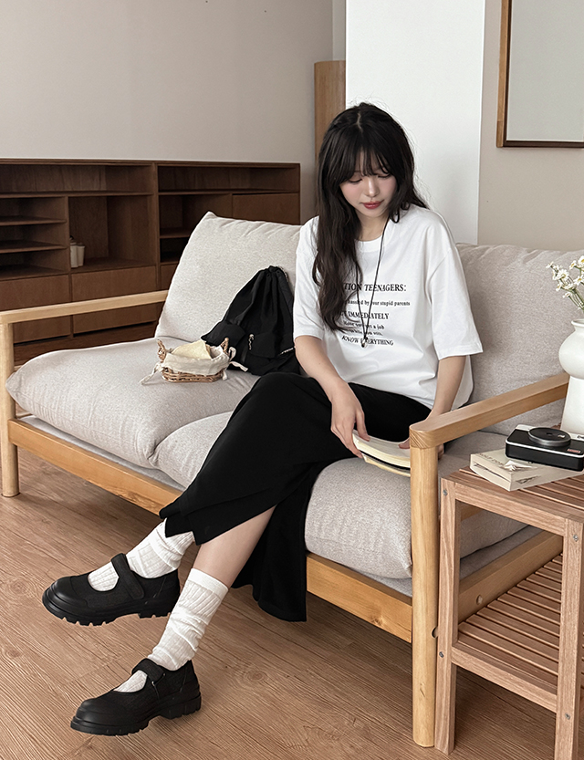 툭 떨어지는 소재감으로 힙과 허벅지 라인 부담 없이 깔끔하게 커버해주는 스커트에요.
