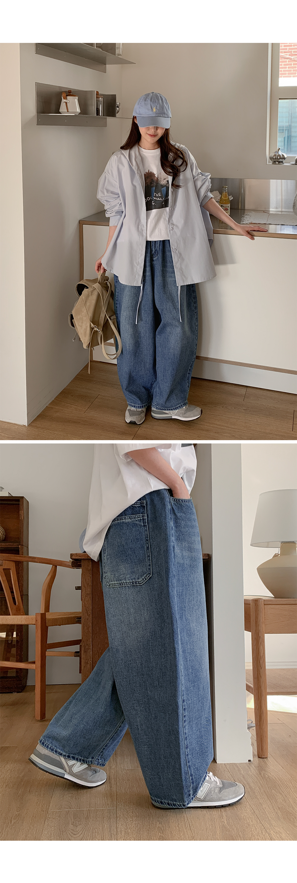 - 넉넉한 와이드 벌룬핏으로 캐주얼한 아웃핏 연출