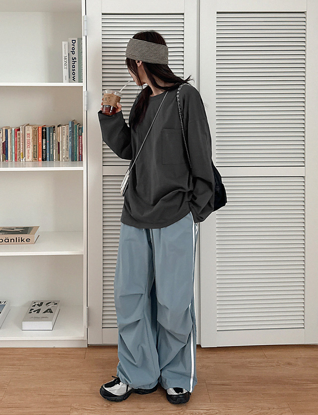 - 자연스러운 드롭 숄더로 편안한 분위기 연출