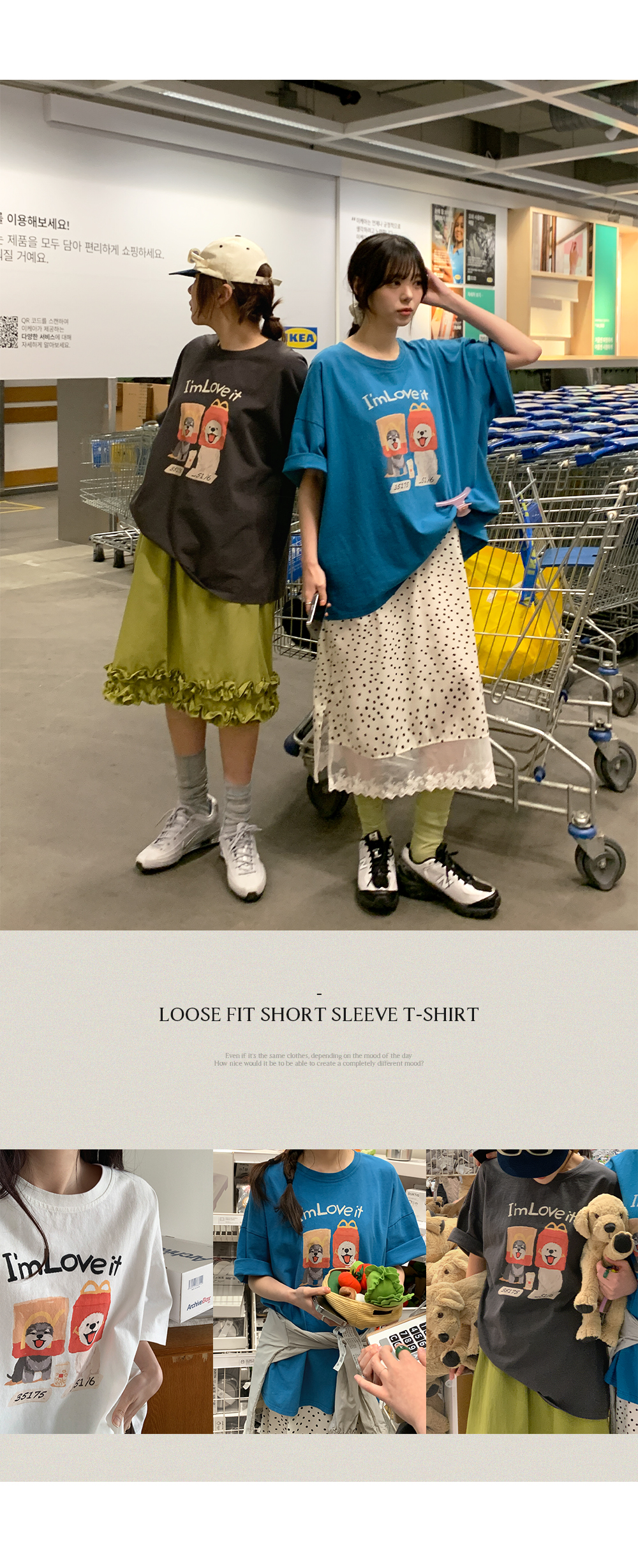 캐주얼한 무드를 더해주는 반팔 티셔츠에요. 몸에 붙지 않고 여유 있게 떨어지는