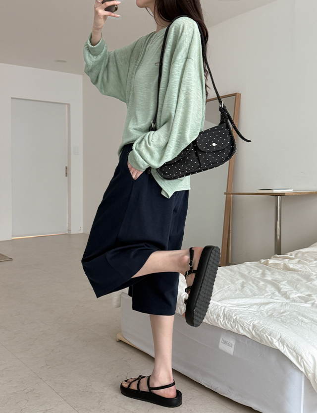 - 와이드한 7부 기장으로 캐주얼하고 트렌디한 실루엣