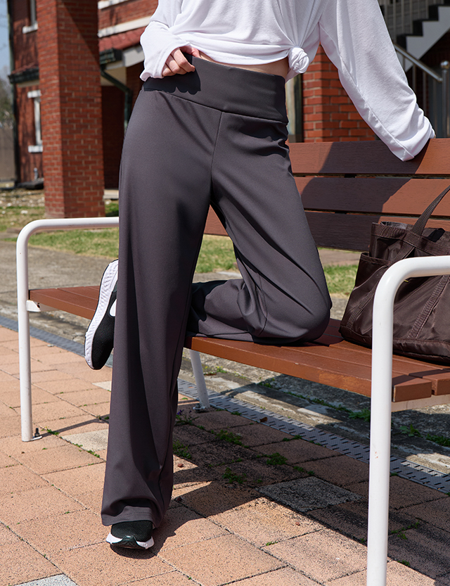 · 허벅지부터 자연스럽게 떨어지는 와이드 핏으로 하체 라인 커버