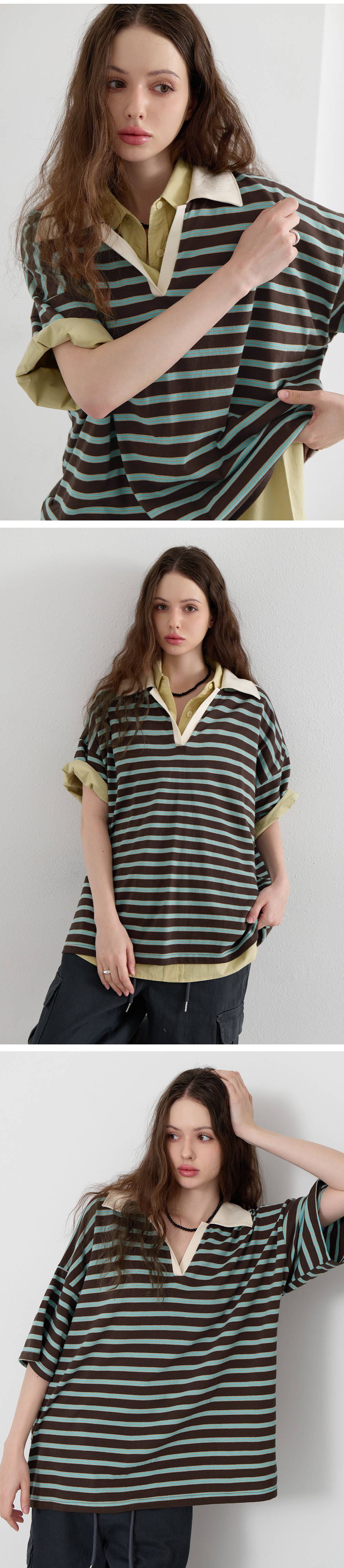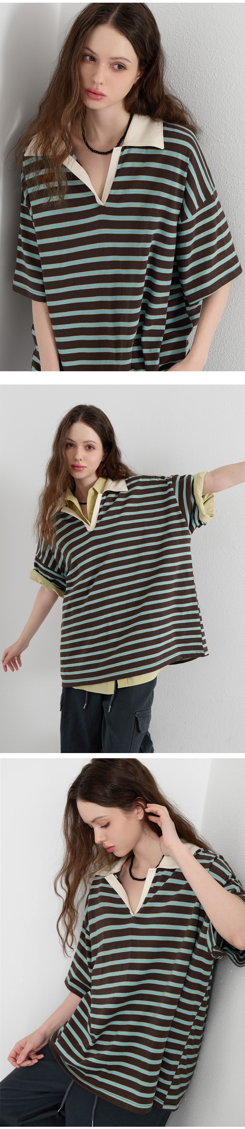 · 오픈 카라와 배색 디테일로