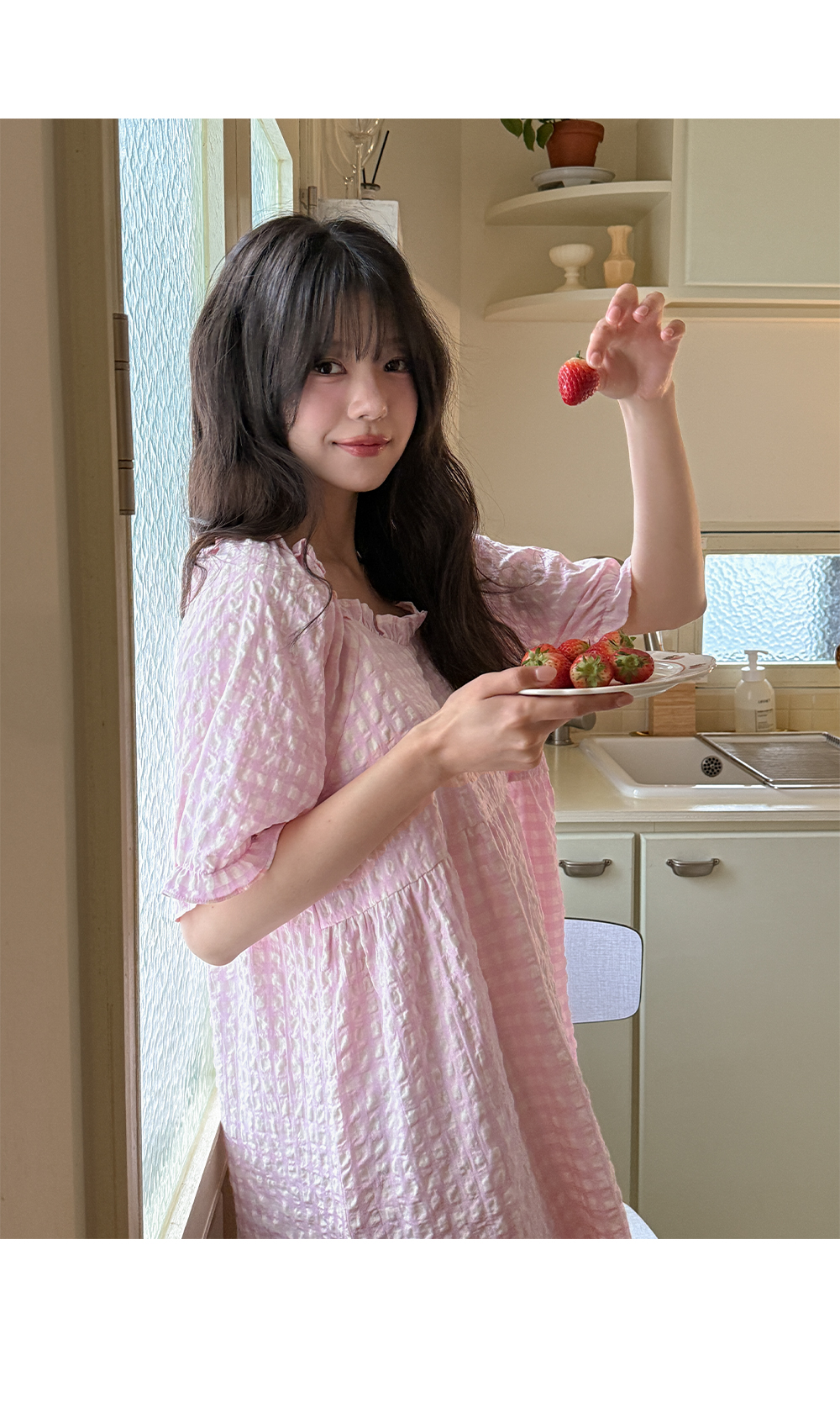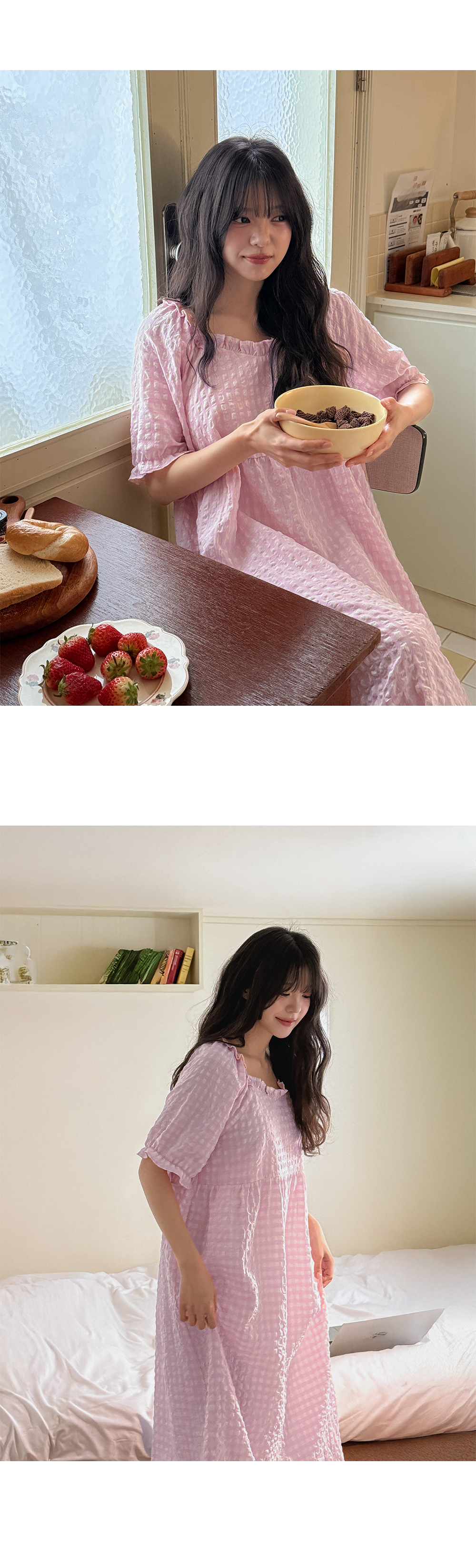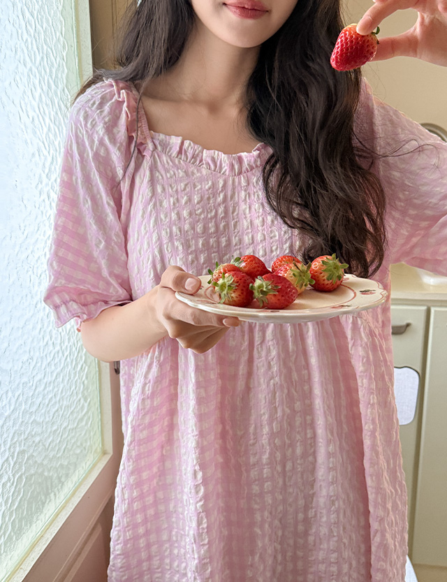 하루를 더 기분 좋게 만들어주는 파자마 원피스입니다.