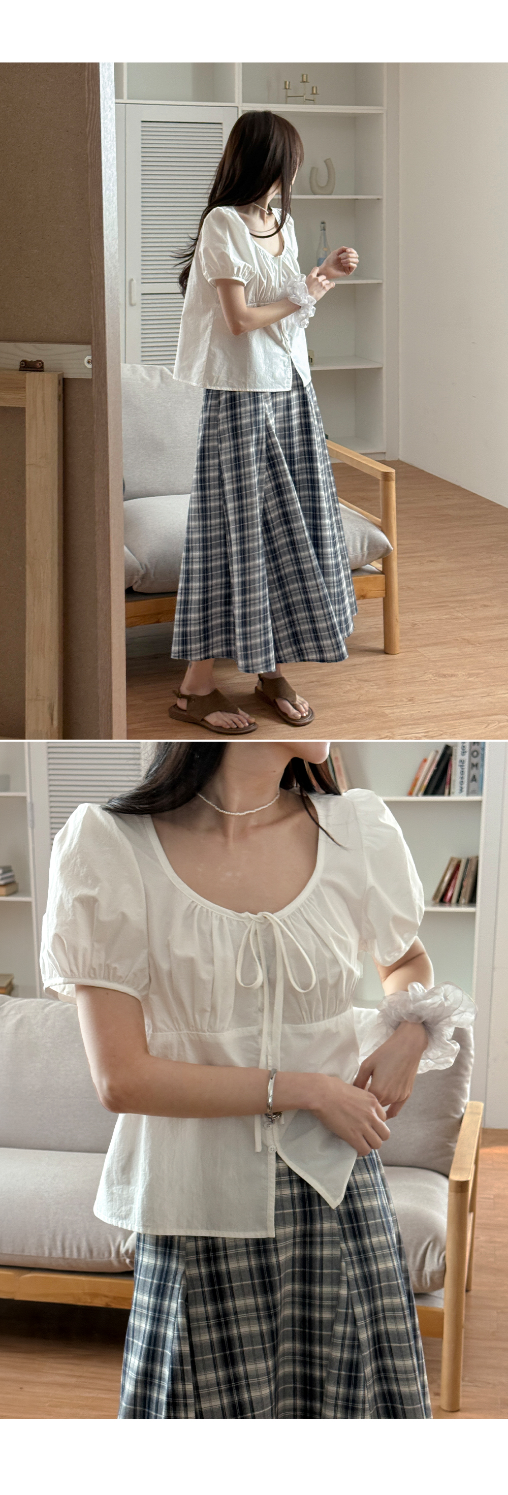 넥 리본 디테일로 러블리한 무드를 한층 더해줘요