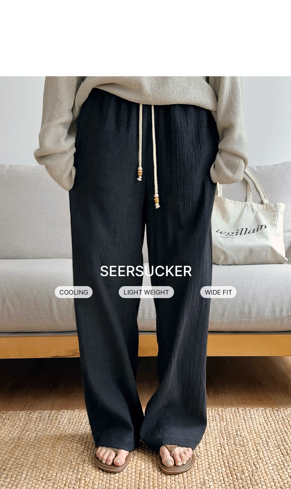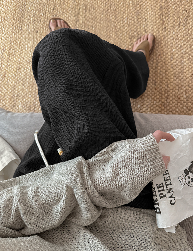 시어서커 와이드 밴딩 팬츠
