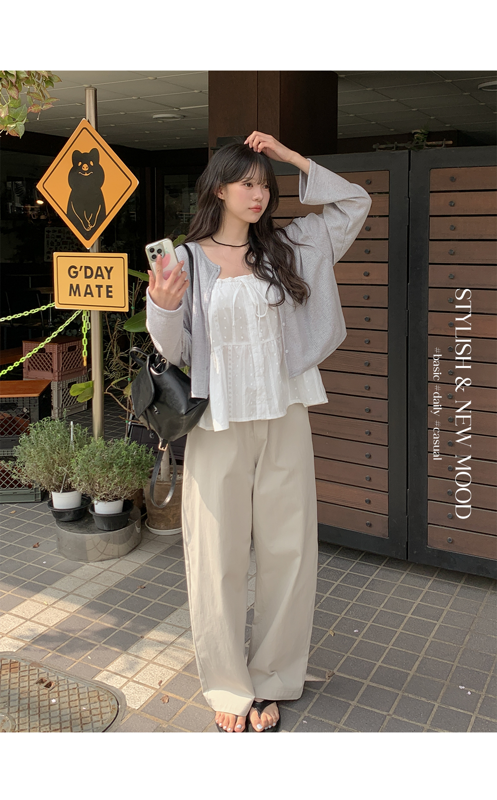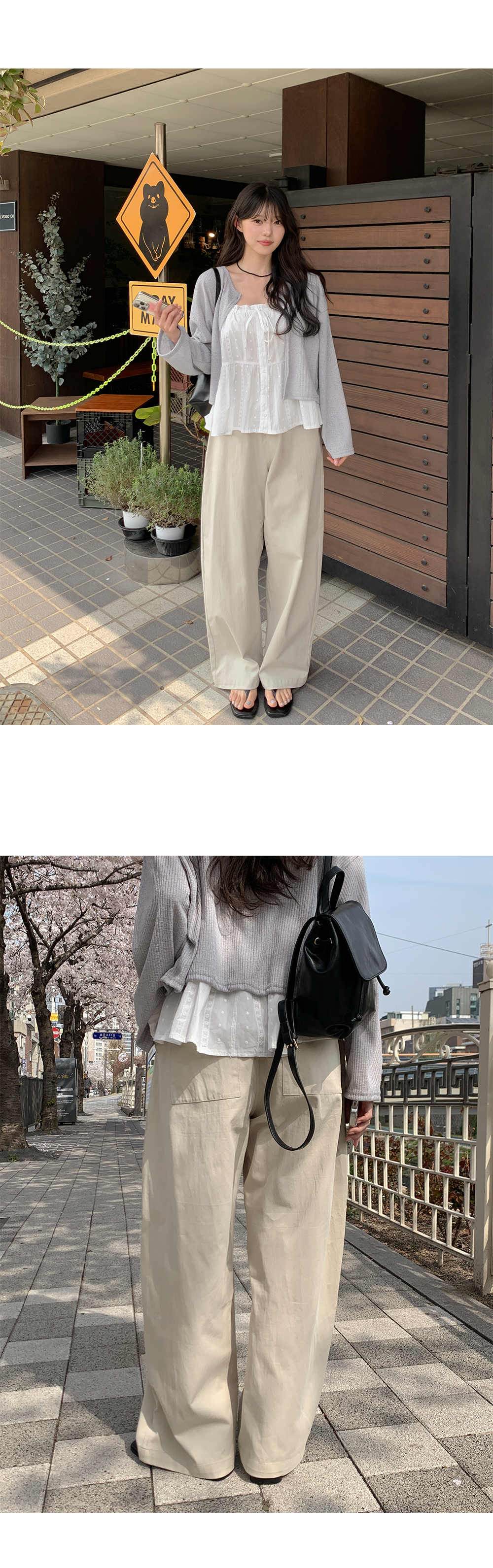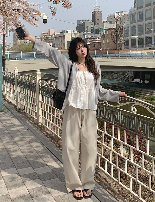 과하지 않게 툭 떨어지는 아웃핏이 하체 라인을
