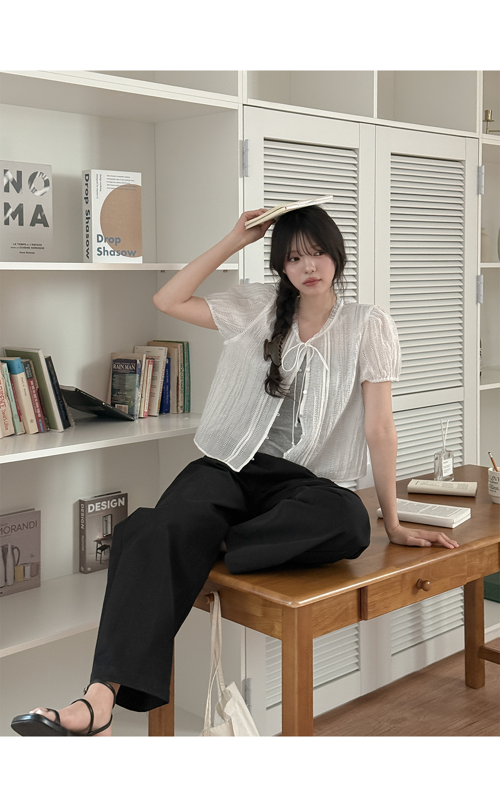 장식 단추를 더해 정갈하고 깔끔한 포인트까지 챙겼어요.