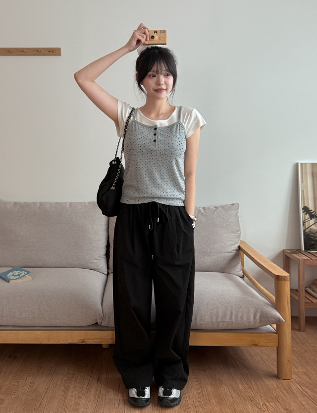 - 가볍고 드라이한 소재감으로 데일리로 부담 없이 착용 가능