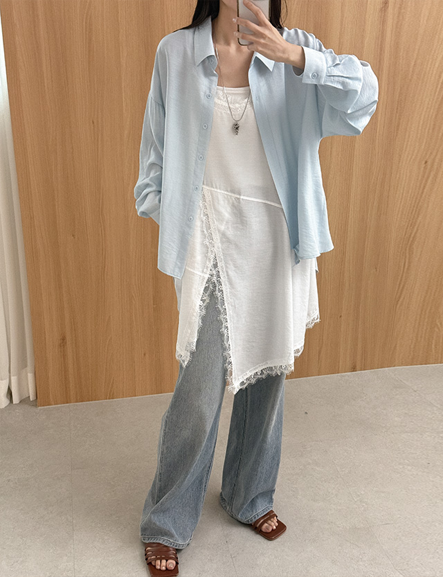 - 넥 라인과 밑단의 레이스 장식으로
