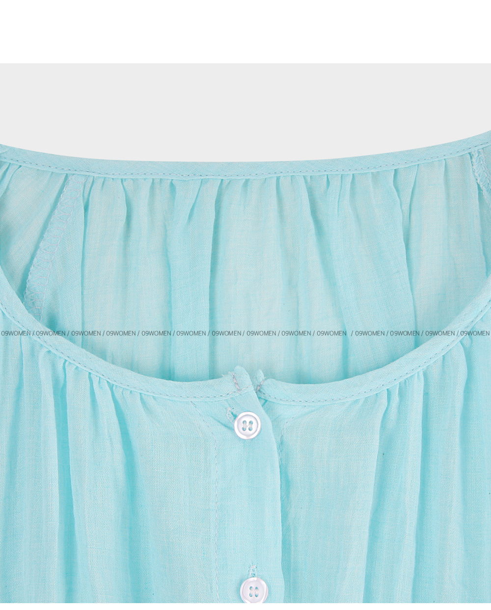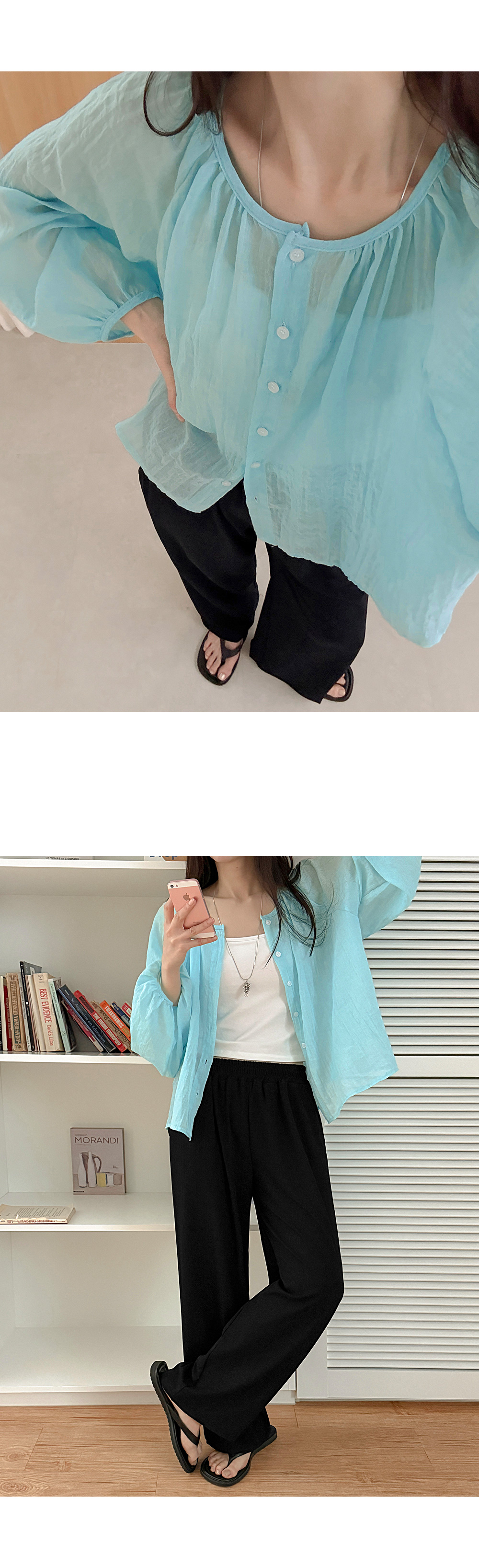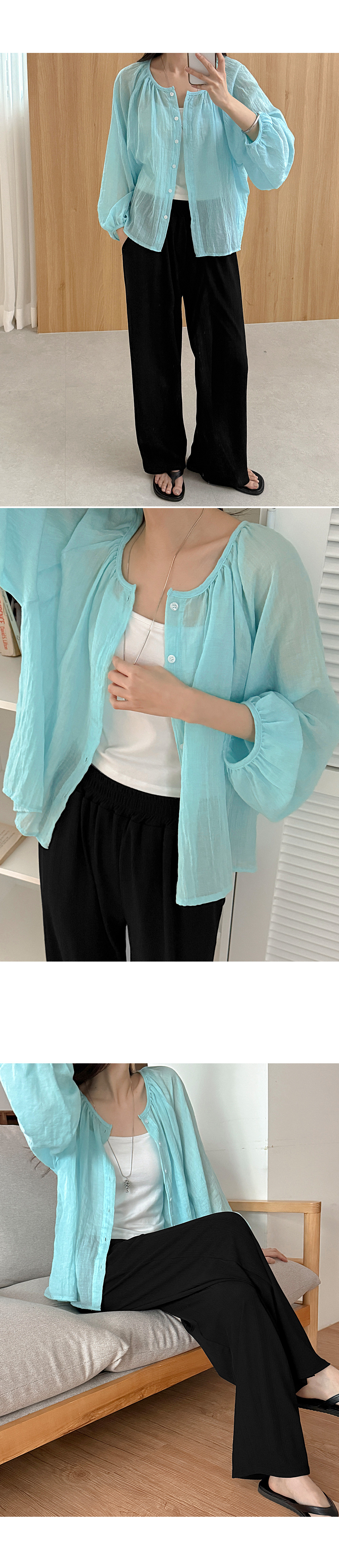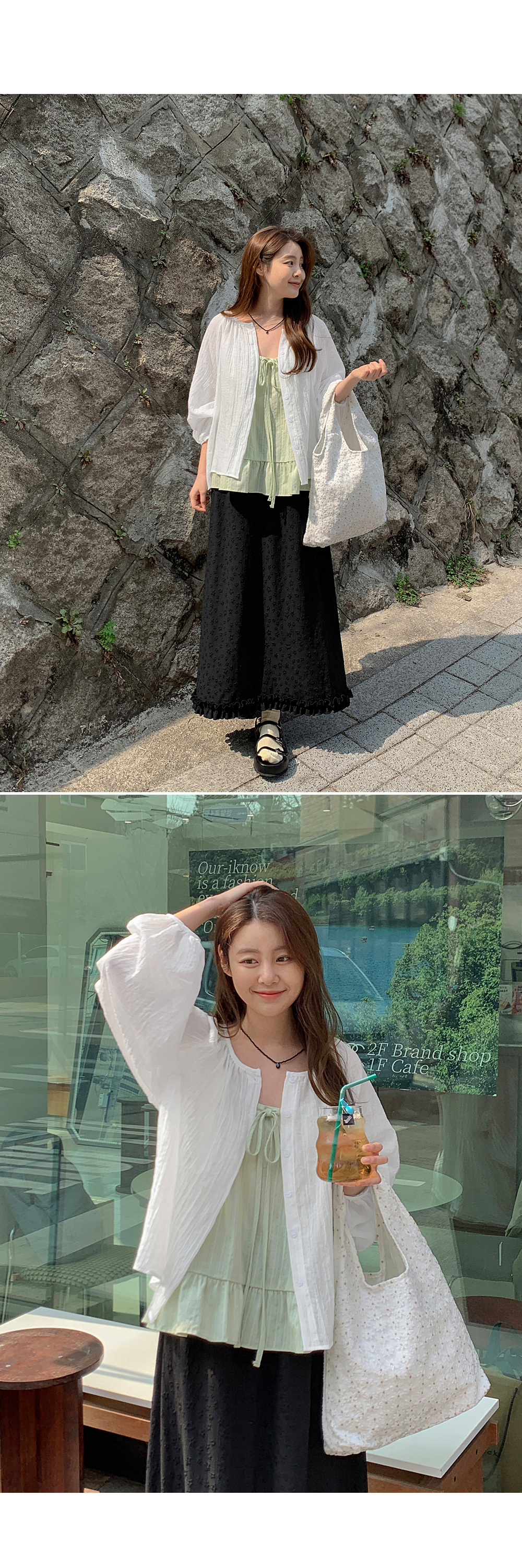 - 넥라인 셔링 디테일로 아방한 실루엣 연출