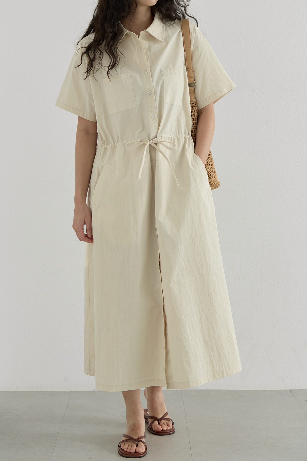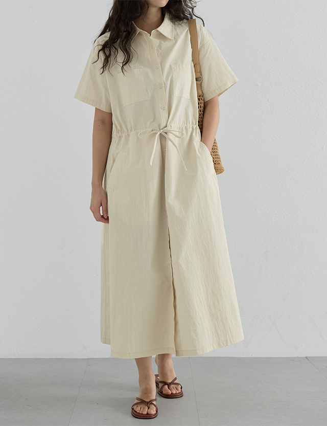 · 코튼 바스락 소재라 캐주얼하고, 소재 자체 힘이 덕분에 바디라인에 달라붙지 않고 시원하게 피팅가능