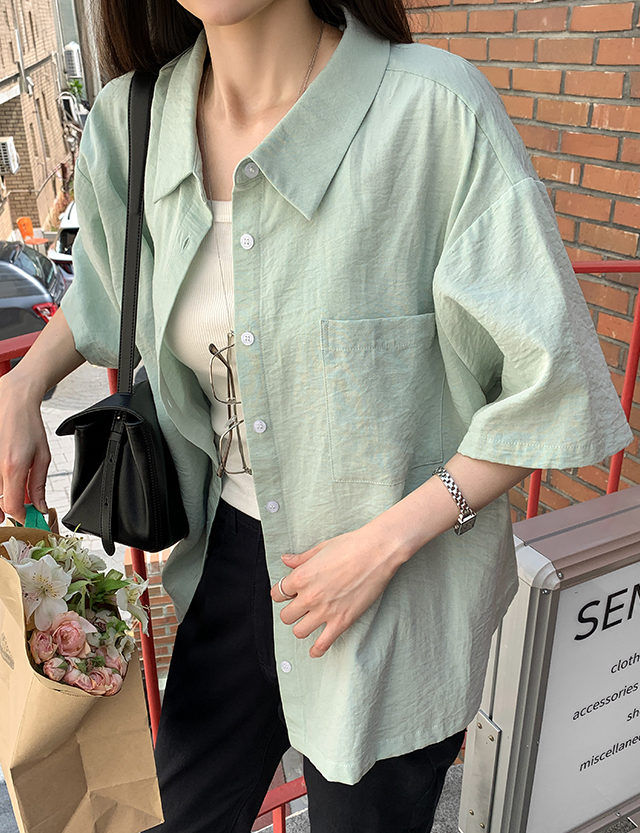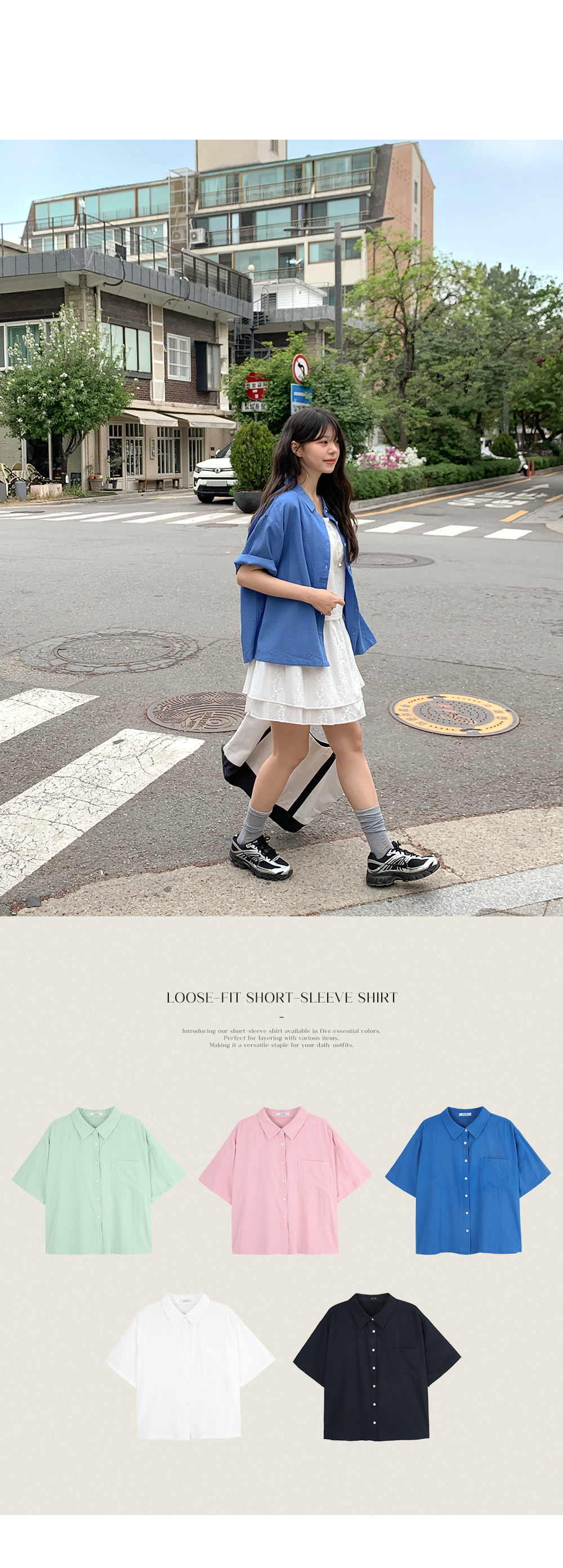 - 세미 크롭 기장에 루즈한 실루엣으로
