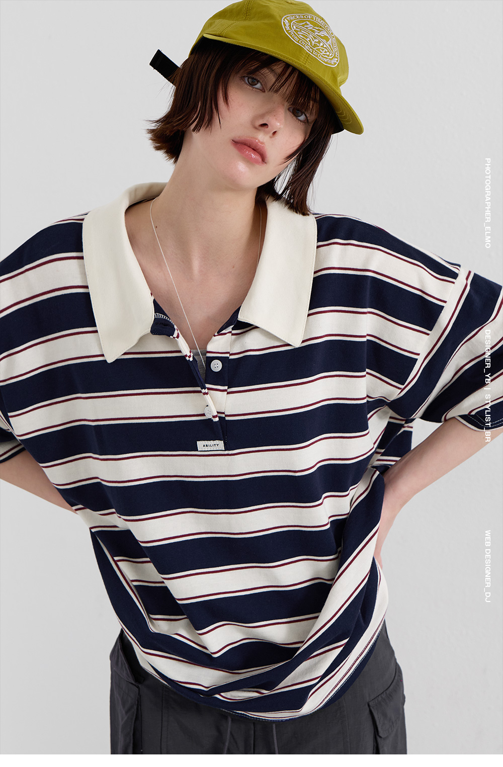 · 배색 단추와 장식 라벨로 포인트 디테일 완성